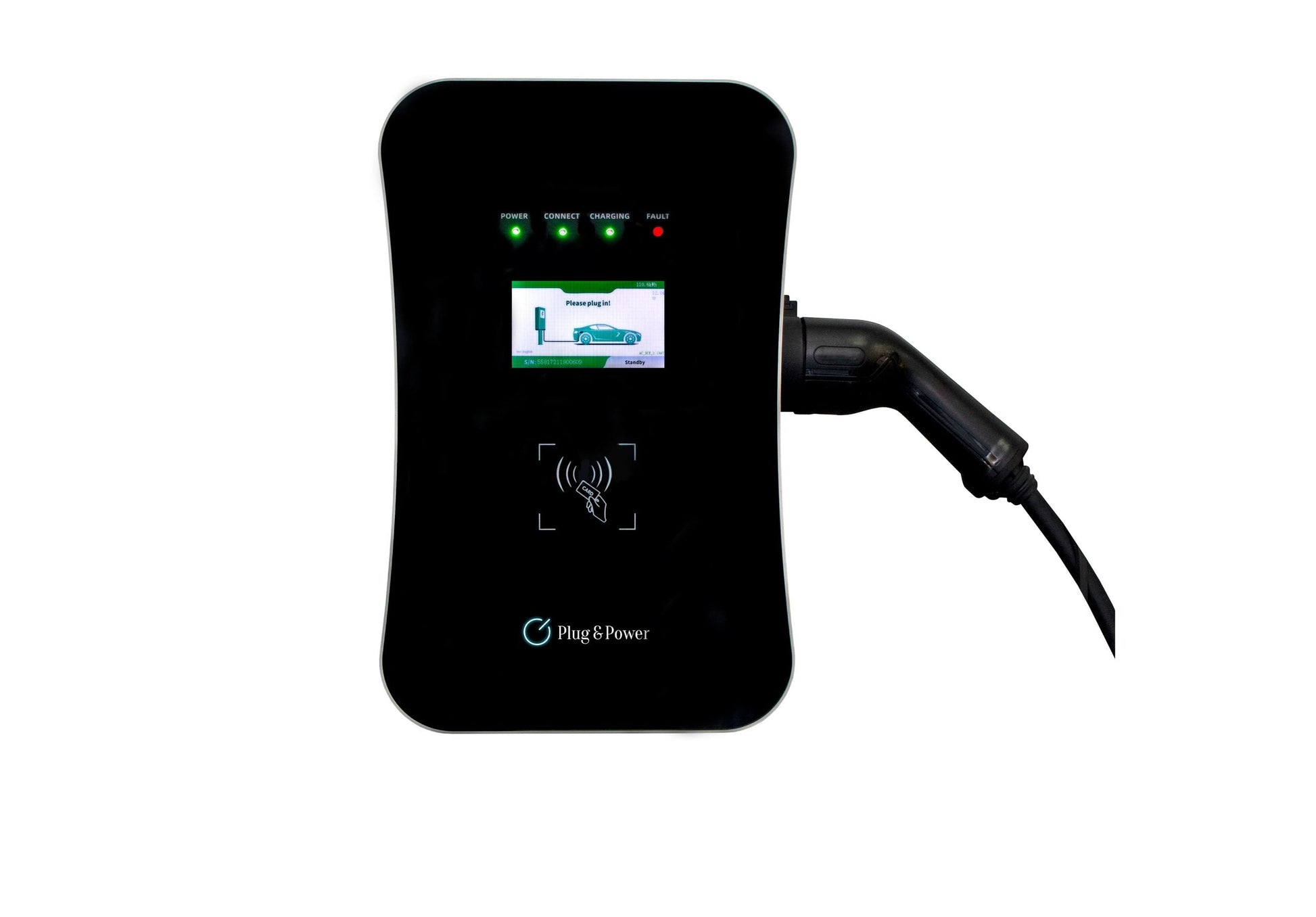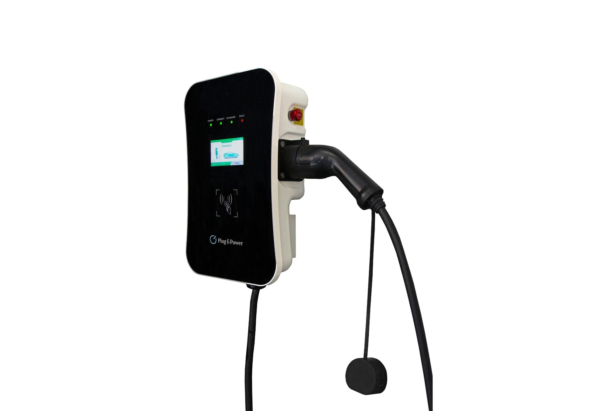 Controlo de carregamento Plug and Play através do LCD ou por RFID. Botão de emergência que lhe permite parar o fluxo de corrente em qualquer altura do abastecimento.