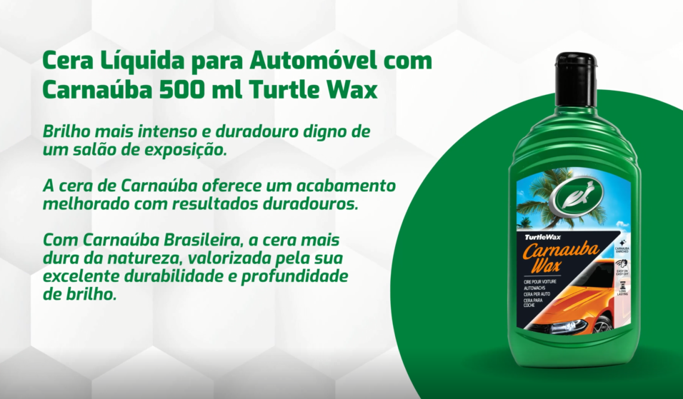 Com Carnaúba Brasileira, a cera mais dura da natureza, valorizada pela sua excelente durabilidade e profundidade de brilho.