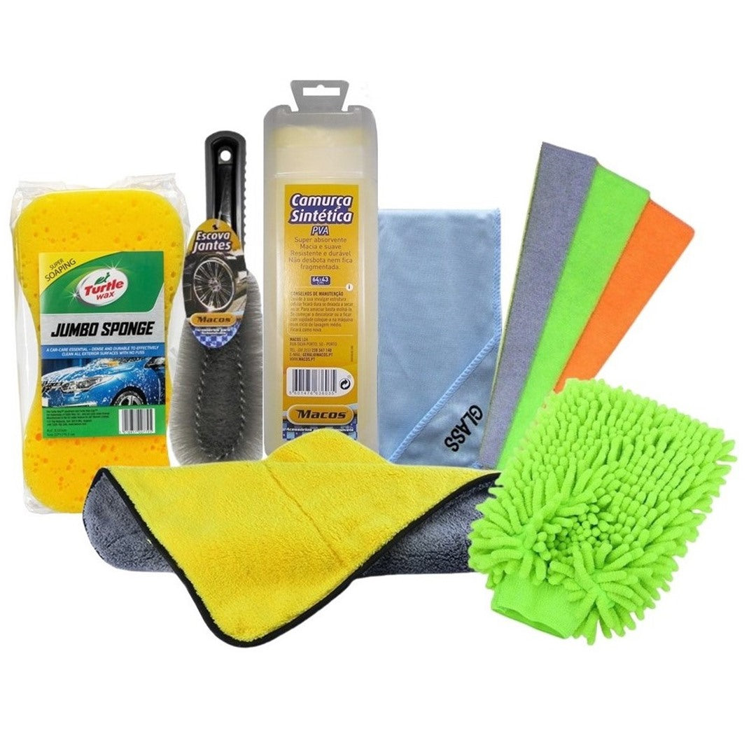 Esponja Jumbo, Escova Limpa Jantes, Camurça PVA, Pano Vidros, 3 Microfibras, Toalha e Luva Microfibra