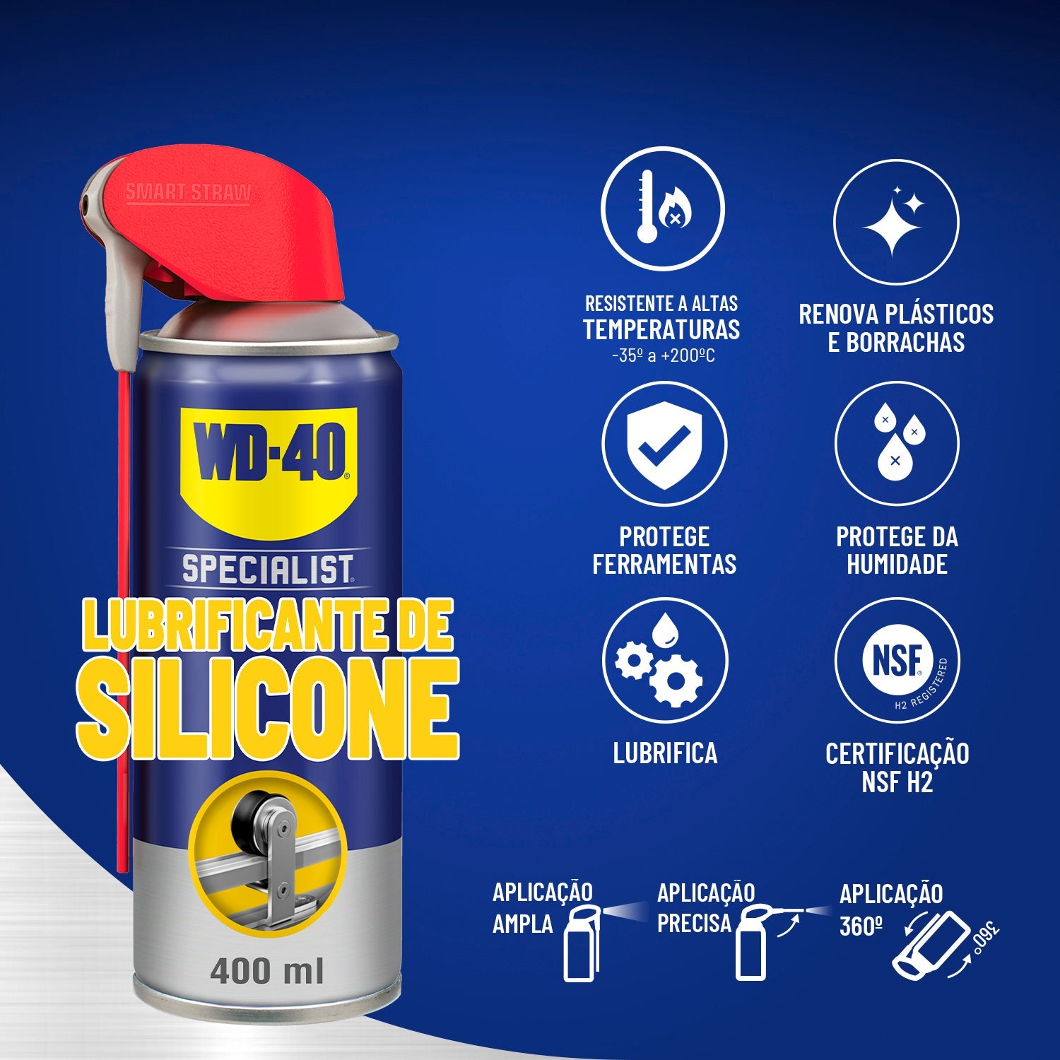O Lubrificante de Silicone WD-40 Specialist é ideal para a lubrificação de plásticos e borrachas. Protege da humidade e prolonga a vida útil das ferramentas e equipamentos.