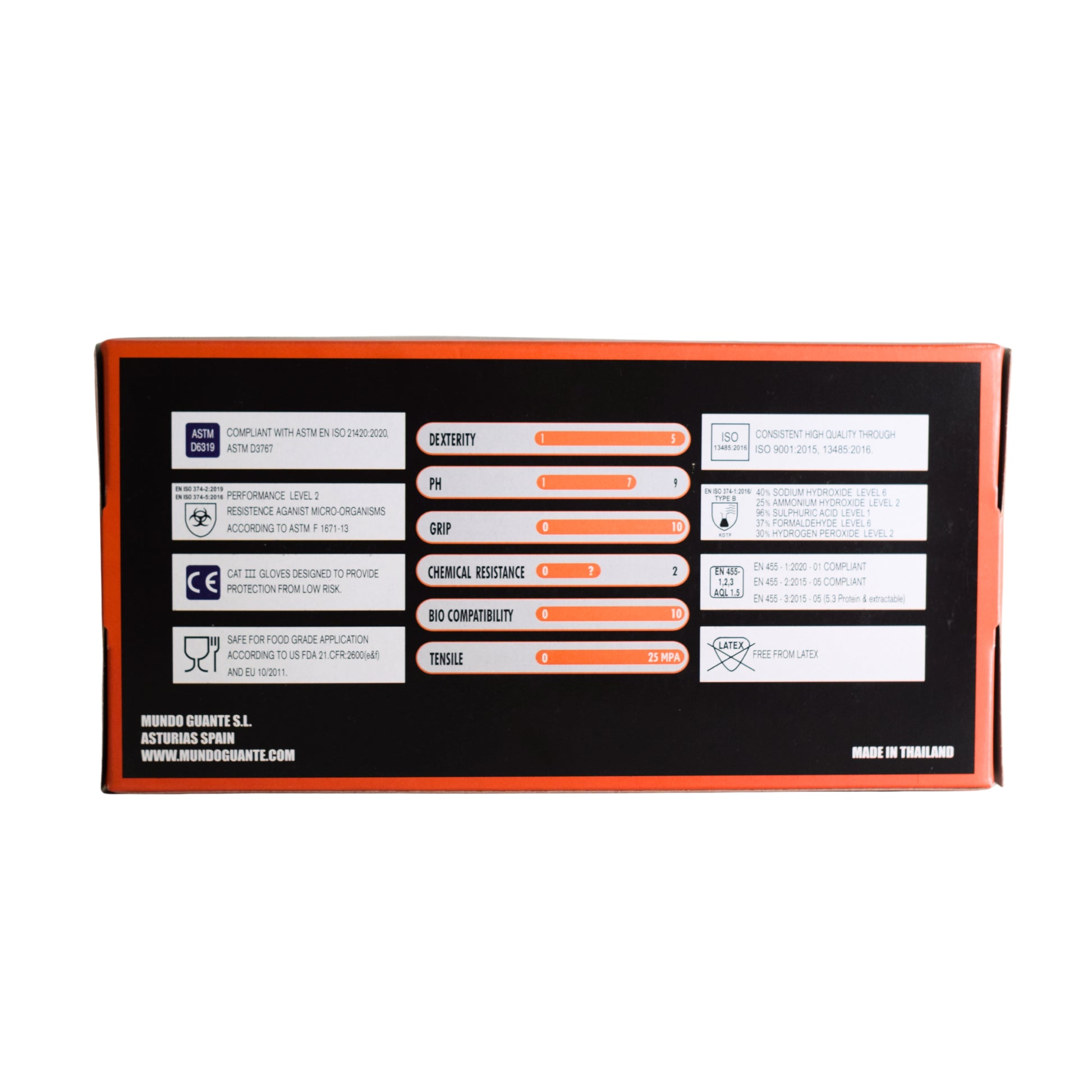 Luvas de Nitrilo, com textura de diamante aderente aos dedos e às palmas das mãos, que permite a melhor aderência, mesmo em objectos molhados e oleosos. Ambidestra cor de laranja de alta visibilidade para o utilizador poder ver sempre as suas mãos mesmo nos compartimentos mais escuros do motor e para que consiga também ter a noção de sujidade. Luvas com uma elevada resistência, durabilidade e que permite reutilização. Indicado para oficinas que procuram qualidade superior. Sem pó nem latex.
