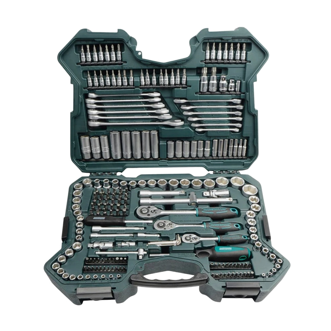 Mala de ferramenta de 215 peças com acabamento em cromo-vanádio em aço especial.