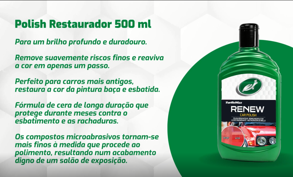 Perfeito para carros mais antigos, restaura a cor da pintura baça e esbatida.